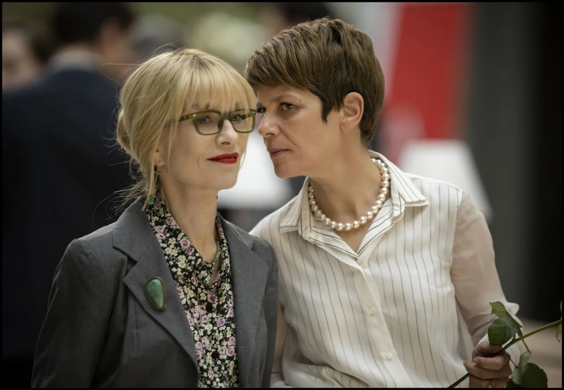 Isabelle Huppert est magistrale en syndicaliste combattante, espiègle, effrontée, gonflée, avec un mari tellement patient et aimant (Grégory Gatebois, acteur d’une densité remarquable). Maureen lui dit : « je ne m’arrêterai pas tant que je n’aurai pas leur peau », et lui de commenter : « Wonderwoman n’a pas rendu son costume ». Elle accuse Oursel d’être le « larbin » de Proglio, du coup le patron d’Areva lui jette un fauteuil à la figure, lui disant qu’il va la « réduire en miettes ». Larbin, larbin : tiens, on se souvient que Proglio était lui-même présenté par Péan comme le « larbin » de Djouhri, on pourrait en déduire que le patron d’Areva, qui fit la guerre à une lanceuse d’alerte, était le larbin d’un homme de main, poursuivi pour association de malfaiteurs, impliqué dans l’affaire libyenne (Sarkozy-Kadhafi). Oursel ne l’emportera pas au Paradis : il décède peu après avoir croisé dans un restaurant Arnaud Montebourg qui, selon le film, aurait alors condamné son comportement. Le même Montebourg aurait déclaré, toujours selon le film, que « c’est injuste ce que [Maureen Kearney] a subi, elle peut compter sur moi », qualifiant la kabbale contre elle de « saloperie ».