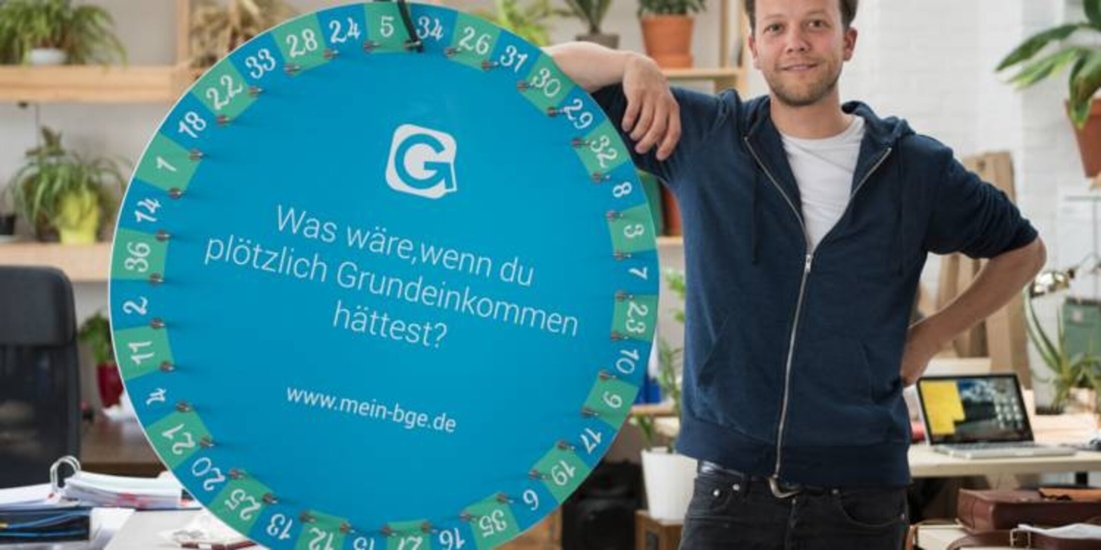 C’est un homme aujourd’hui âgé de 35 ans, qui continuant à percevoir des royalties (1000 euros) de la start-up qu’il avait fondée, qui a lancé l’idée de la mise en œuvre concrète de ce revenu de base en 2014. Il avait en effet découvert qu’il pouvait bien vivre avec 1000 euros par mois, et a eu envie de permettre à d’autres de vivre la même expérience, permettant de ne plus se torturer à l’idée de trouver de l’argent pour survivre et donner plus de sens à son existence. Il s’est alors mis à collecter des fonds, collectes qui ont si bien fonctionné que son association (Mon revenu de base) a commencé à verser 1000 euros à quelques personnes (moins d’une centaine). Dès que 12 000 euros étaient engrangés, alors une personne était choisie… par tirage au sort, pour percevoir 1000 euros mensuels sur un an. Quel que soit l’âge de l’impétrant : Capital (avec l’AFP) a cité en avril 2017 le cas de Miko, petit Berlinois, âgé de 5 ans qui, « heureux cobaye », avait été tiré au sort pour percevoir le pactole ! De même que des candidats fortunés pouvaient très bien être retenus après tirage au sort.