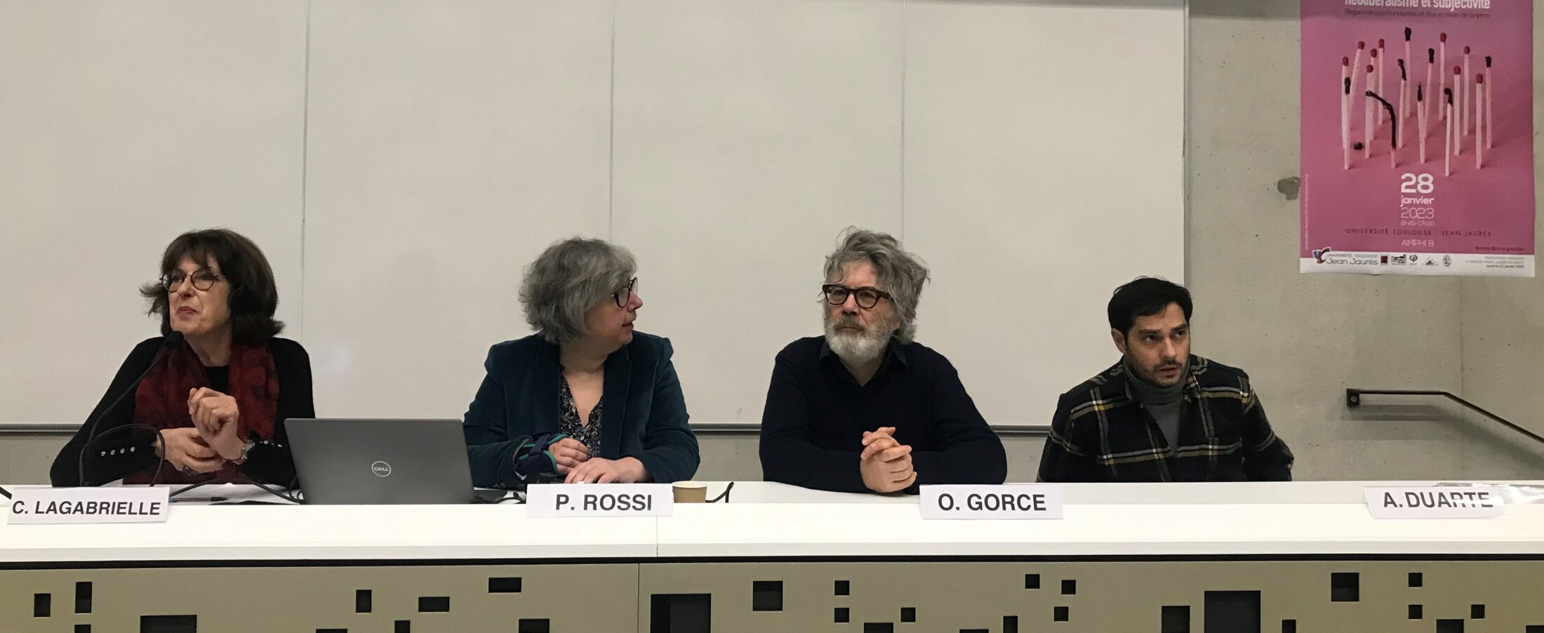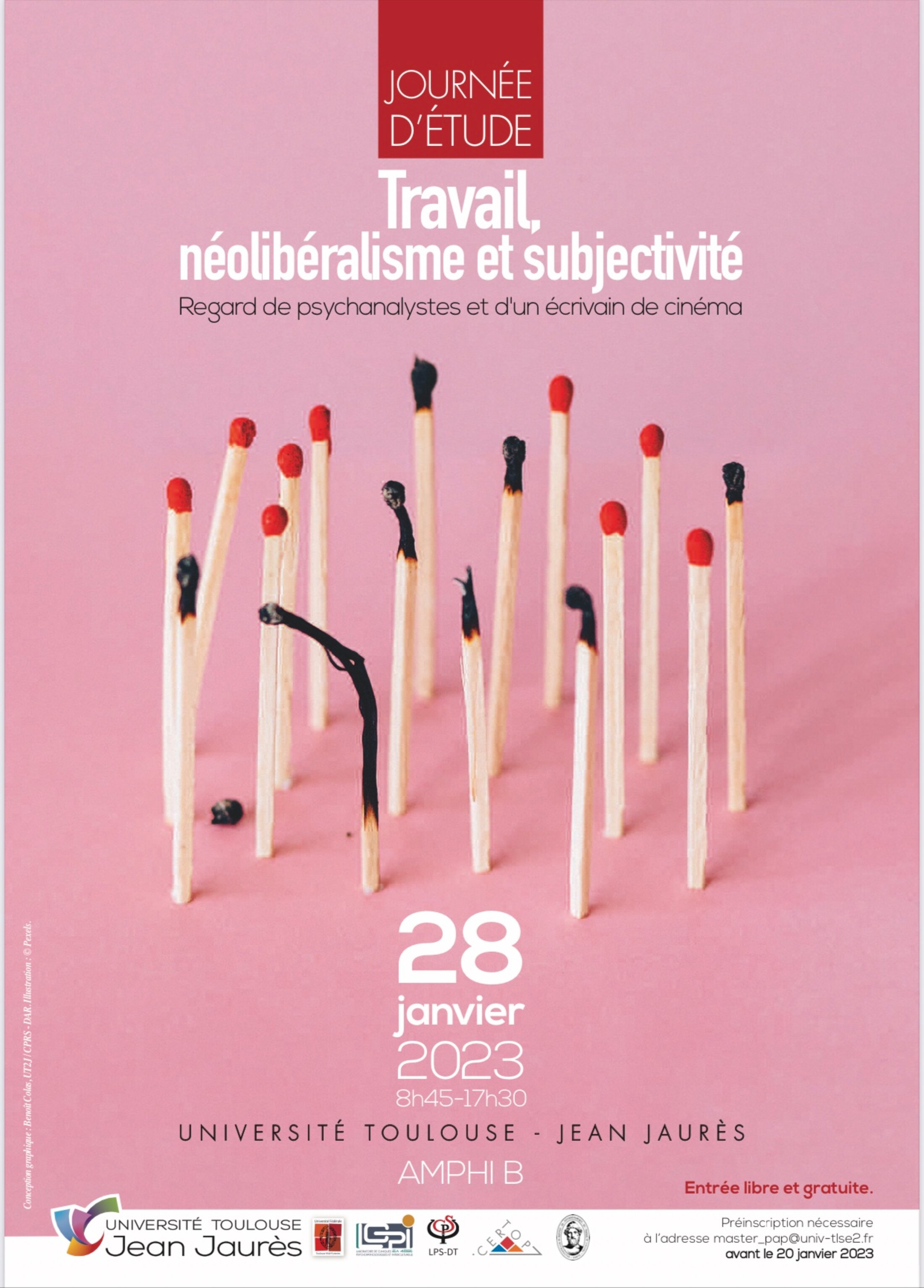 Samedi 28 janvier, l’Université Jean-Jaurès de Toulouse est déserte, comme tous les samedis, mais un amphi est bondé : 350 personnes (psychologues, médecins du travail, étudiants, anciens étudiants) participent à une journée d’étude ayant pour thème : Travail, néolibéralisme et subjectivité. Cet événement est organisé, à l’UFR de Psychologie (dirigée par Christine Lagabrielle), par les étudiants et l’équipe pédagogique du master Psychologie de l’accompagnement professionnel, approches clinique et sociale (Laurent Combres, Antoine Duarte et Patricia Rossi, enseignants-chercheurs).