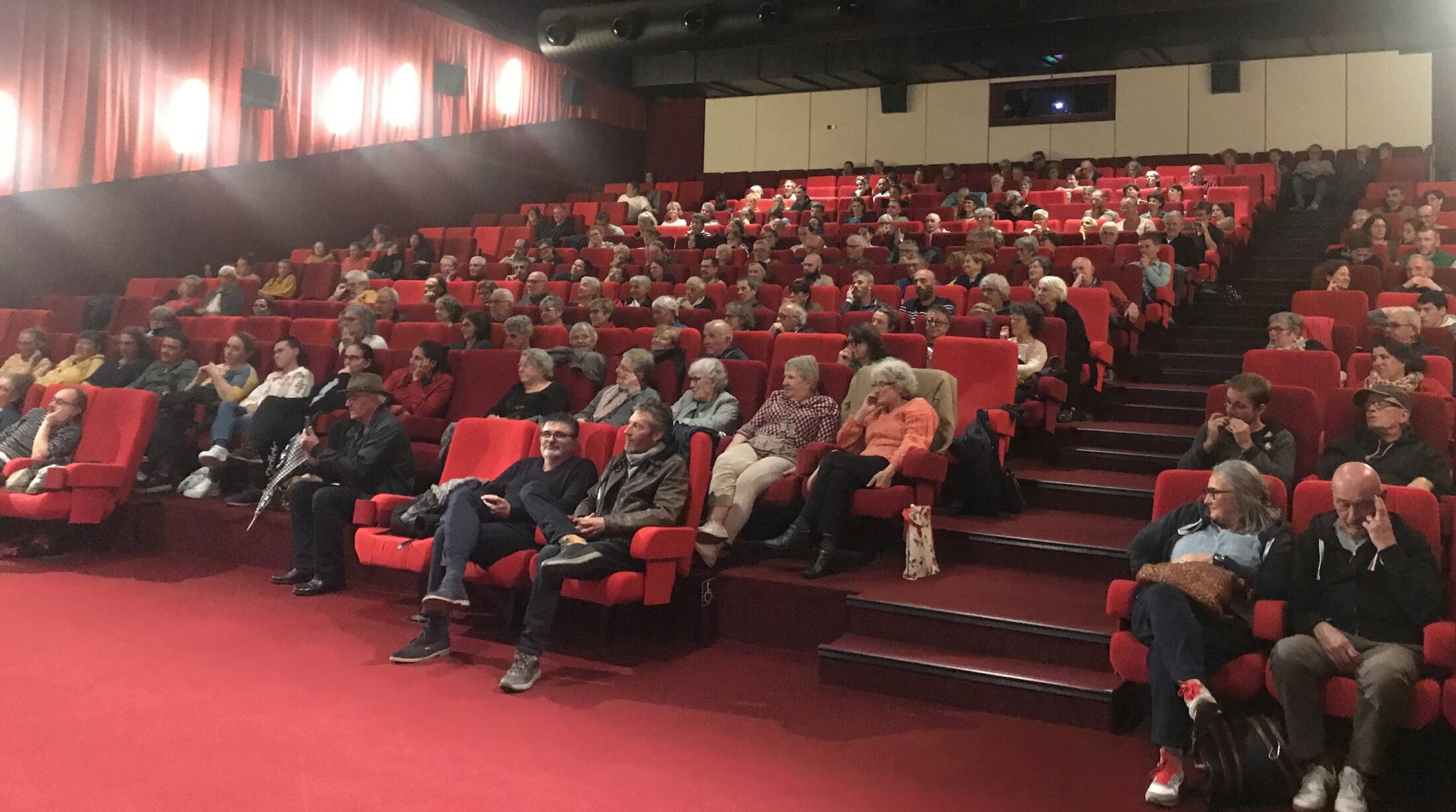 J’interroge Gilles Perret sur la fin qu’ils avaient prévue si, au grand jamais, elle avait bougé, reconnaissant avoir insulter à tort les petites gens. Il me répond que rien n’avait été envisagé. S’il admet que le film a une fin plus logique, ils y ont cru un peu car elle a joué le jeu et a admis qu’elle avait dit « de la merde » à la télé. Les réalisateurs ne redoutent pas qu’elle réagisse mal à la sortie du film, qu’elle a vu et aimé : « les coups ne viennent pas d’où on pensait ». En effet, des militants LFI ont reproché à François Ruffin, qui a quitté le mouvement mélenchoniste, d’avoir donné la parole à une « pro-génocidaire » et ont appelé au boycott (non vérifié ce soir-là, la salle est pleine).