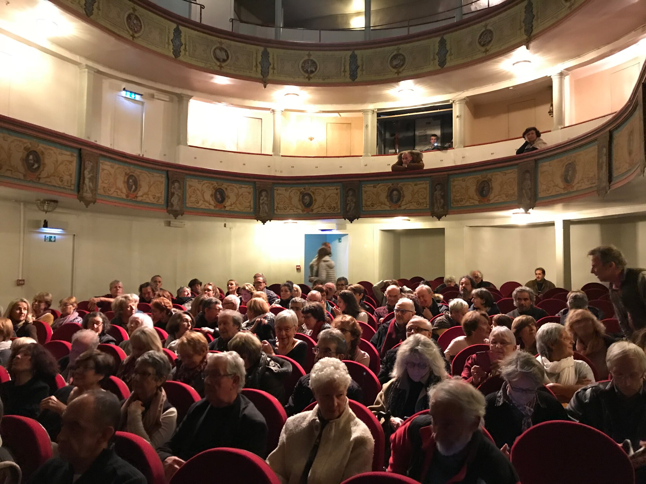 Nous sommes à Auch dans la salle du théâtre à l'italienne du XVIIIème, le seul de tout le Sud-Ouest, incrusté à l'intérieur de l'Hôtel de Ville. Éric Vuillard est venu au chef-lieu du Gers, suite à l'invitation que la librairie Les Petits Papiers, perspicace, lui avait lancée bien avant l'attribution du Prix Goncourt. Il a respecté son engagement : il est interrogé par Pascal Pradon et Marielle Dy, libraires, et il s'exprime devant une salle bondée.
