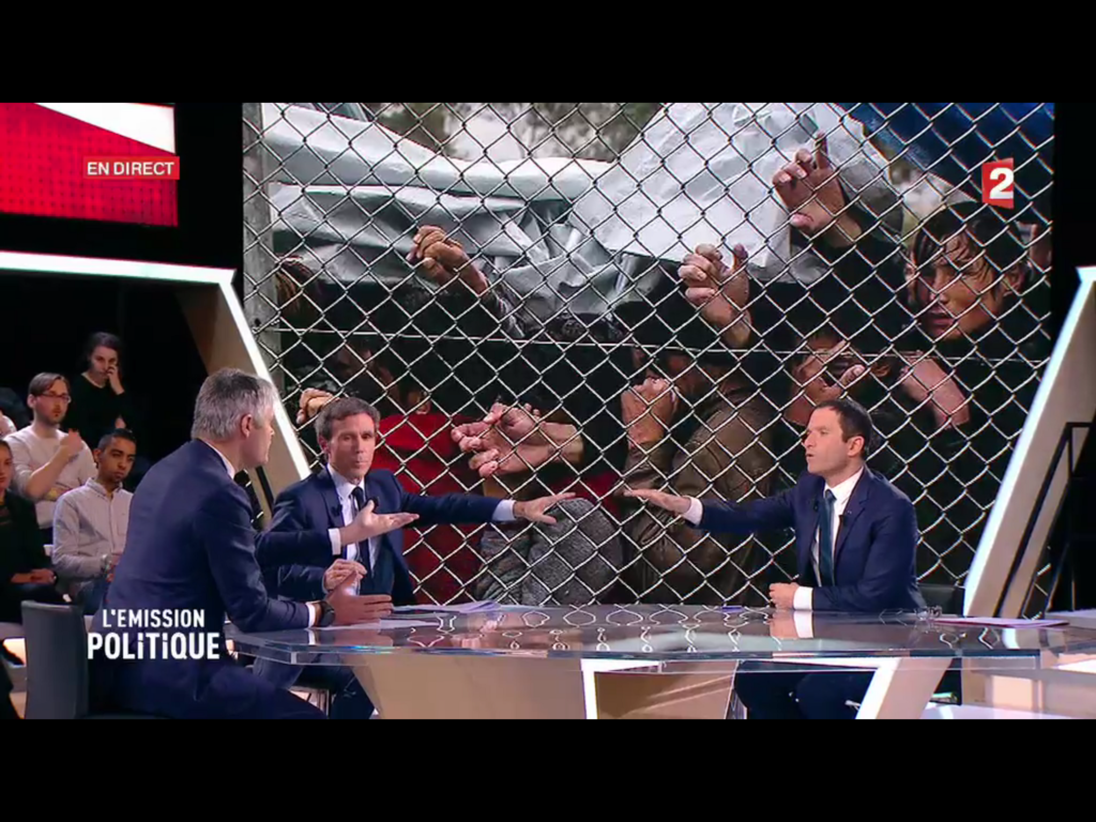 . France 2 : capture d'écran que j'ai réalisée au moment précis où les mains des débatteurs exprimaient tout autre chose qu'un appel au secours.