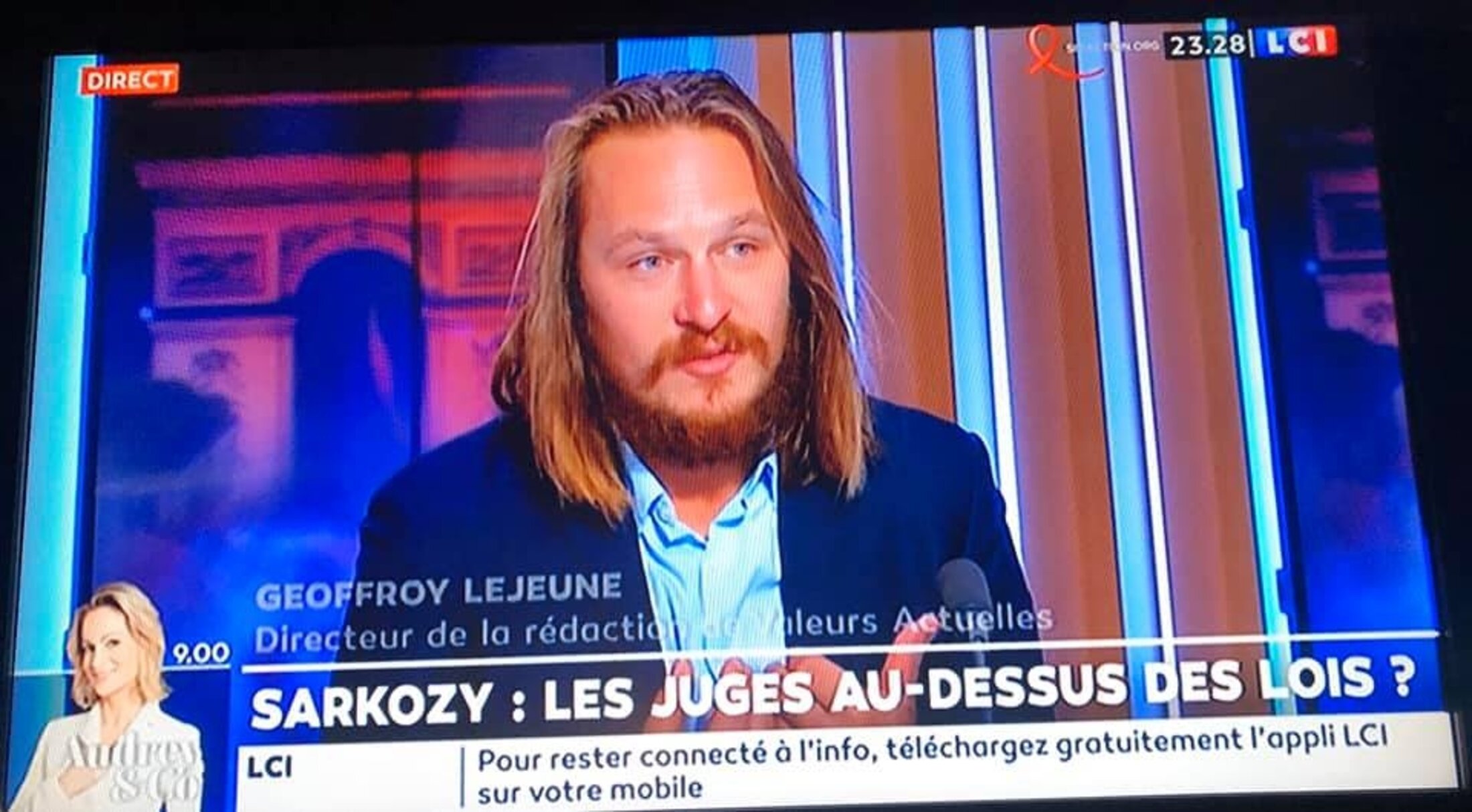 Geoffroy Lejeune (Valeurs Actuelles) débattait hier soir sur LCI avec l’éditorialiste Nicolas Domenach (qui a si longtemps débattu avec Éric Zemmour sur RTL). Lejeune était là pour dézinguer les magistrats, en particulier ceux du Parquet national financier : on assistait ainsi à la plaidoirie du patron de la rédaction d’un canard d’extrême-droite en faveur de François Fillon (et de ses malversations), de Nicolas Sarkozy (pauvre victime d’une « cabale » judiciaire depuis des années), de Jacques Chirac (dont les magouilles à la mairie de Paris n’auraient pas mérité condamnation), et aussi de François Bayrou ! Bien sûr, il n’oublie pas ensuite de voler au secours de Didier Raoult (« je suis dans son camp ») et de Michel Onfray.