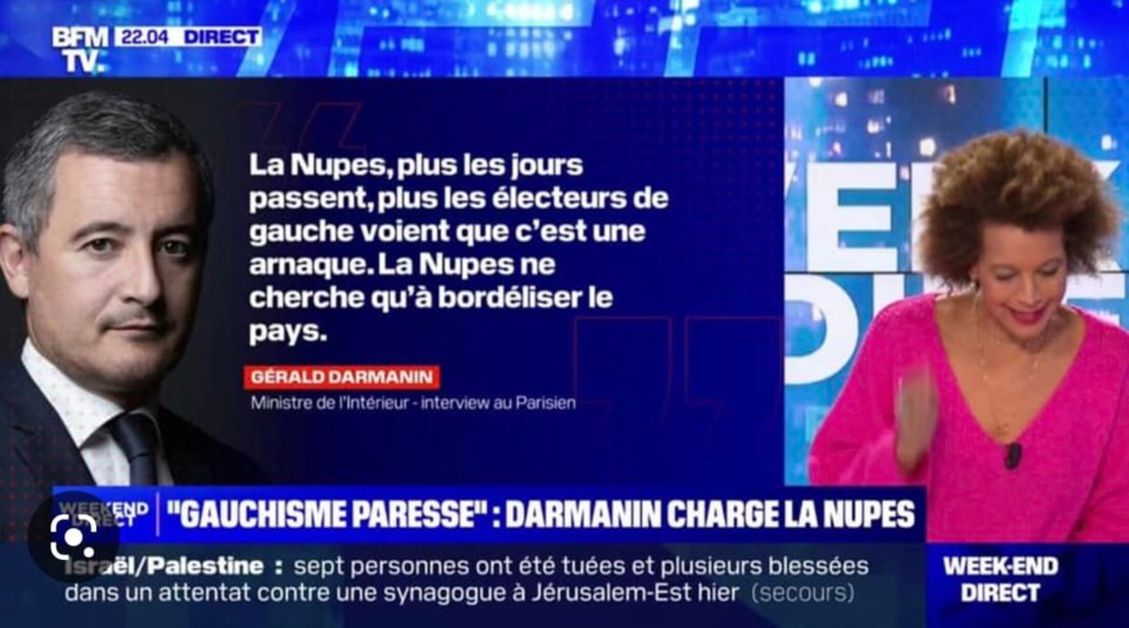 Tout le monde a compris que M. Darmanin monnayait son soutien politique par des "faveurs" sexuelles, et ça le rend légitime pour rester ministre de l’intérieur ? Lui pour toutes excuses invoque le fait que cela relevait de « sa vie de jeune homme » : à 26 ans, n’est-ce pas, on peut sans vergogne se comporter de la sorte ? Sans que son parti LR, ex-UMP, pour lequel il agissait, ne lui demande des comptes. Et aujourd’hui il accuse ses opposants politiques de la NUPES de vouloir « bordeliser » l’Assemblée ! Il n’est pas plus légitime pour insulter ainsi les défenseurs des droits sociaux que pour être ministre. Certes, il officie sous l’égide d’un chef d’État qui ne l’a pas sanctionné alors qu’il aurait dû le dégager, mais lui-même n’a-t-il pas proclamé qu’il « emmerdait » certains citoyens ? Décidément, la langue de la République part à vau-l’eau.