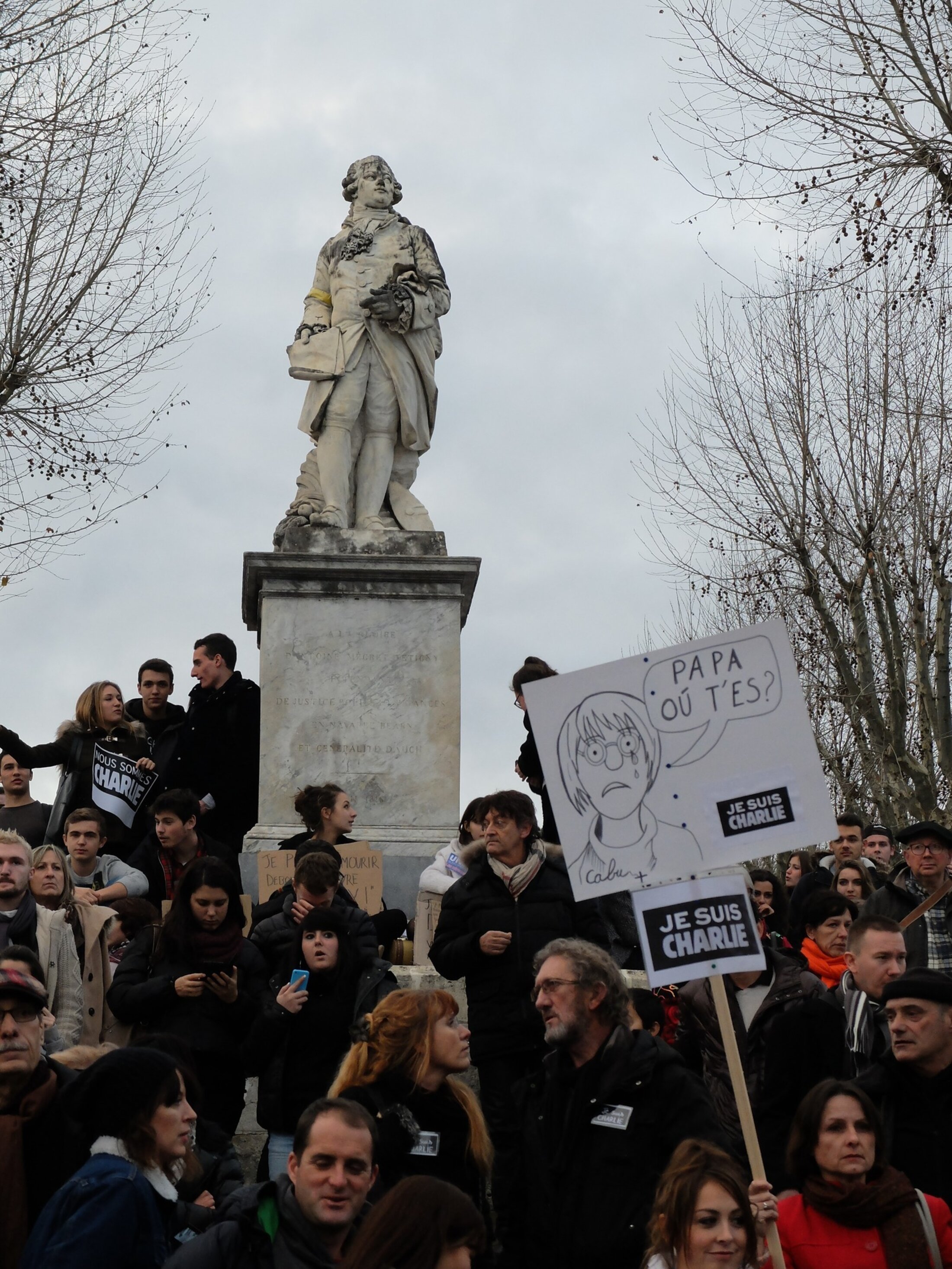 Alors qu’il n’y avait eu aucune manifestation en mars 2012, bien que des petits enfants, Juifs, avaient été abattus à bout portant, ces événements tragiques de Paris ont provoqué des réactions de solidarité envers la rédaction de Charlie Hebdo et en faveur de la liberté d’expression (et de façon moindre pour les victimes juives de l’Hyper Cacher), avec des rassemblements inégalés depuis mai 1968. On a assisté alors à une volonté d’unité du peuple français, sans aucun dérapage à l’encontre des habitants de ce pays, arabes ou d’origine arabe (« Pas d’amalgame »).