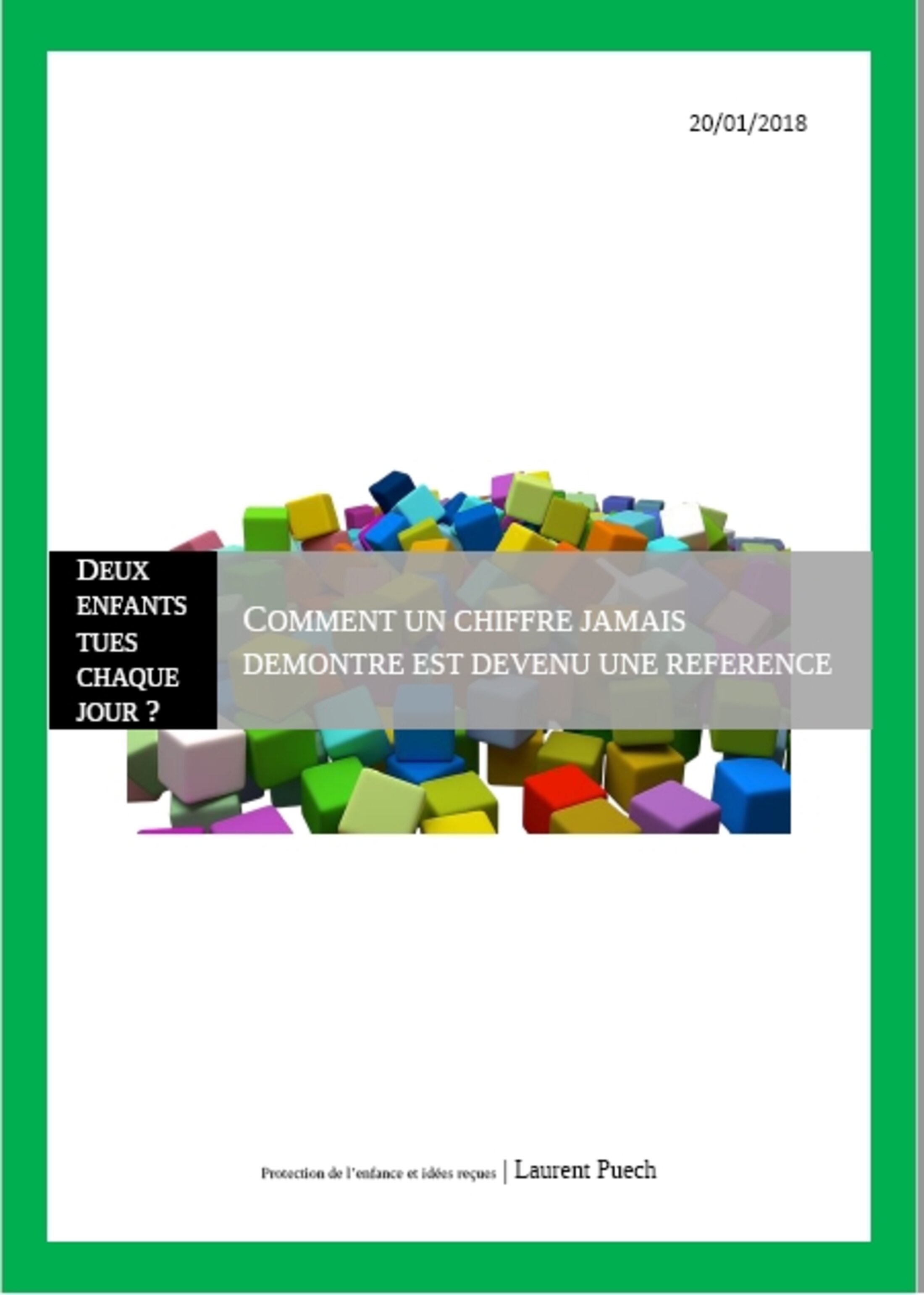 . Deux enfants tués chaque jour ? Comment un chiffre jamais démontré est devenu une référence, Laurent Puech, 20 janvier 2018.