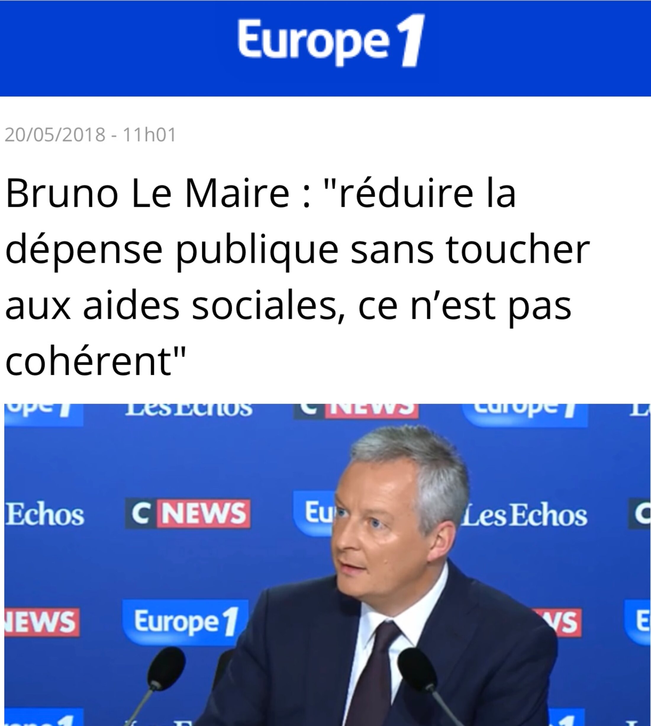 Les commentateurs se perdent en conjectures, qu'a-t-il voulu dire exactement, Bruno Le Maire, lors de l'émission le Grand rendez-vous de David Doukhan sur Europe 1 dimanche dernier ? Son ministère a précisé qu'il visait les politiques d'aides à l'emploi et non pas les "aides sociales personnalisées". En somme, ce qu'il aurait dit à Agnès Buzyn pour la rassurer, selon ce qu’elle a confié sur France Inter le 24 mai.