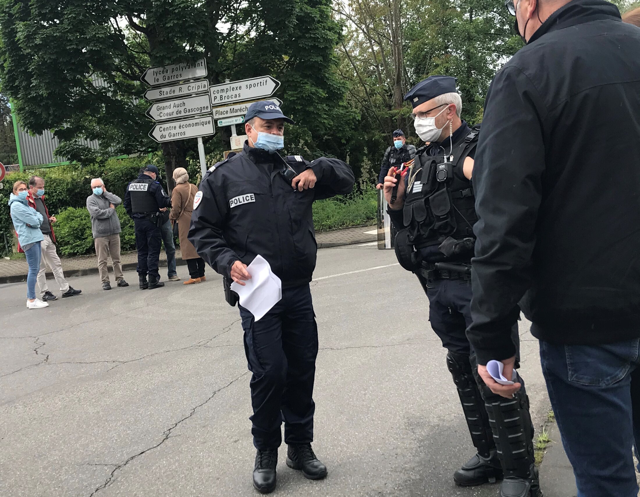 Lors de la venue de Jean Castex, premier ministre, dans le Gers le 14 mai, le Préfet a interdit hier soir toute manifestation à Auch. Il venait voir le vaccinodrome installé dans la Halle du Mouzon. 25 intermittents, délégués par leurs camarades occupants les lieux de culture (Circa-Ciné 32) se sont ainsi mobilisés mais des CRS lourdement armés et des policiers en civil de la BAC empêchaient tout approche du Mouzon si on n’avait pas le blanc-seing pour se faire vacciner. J’en sais quelque chose : l’un d’entre eux, m’empoignant par le bras, était prêt à m’embarquer manu militari au commissariat si je ne dégageais pas au plus vite. Ma « carte » de blog Mediapart ne l’amadouait nullement. Les syndicats agricoles y compris la Confédération paysanne ont été reçus par les ministres : dans un premier temps, la Conf’ n’avait pas été invitée, mais suite au communiqué de cette dernière sur cet « irrespect », le premier ministre s’est ravisé.