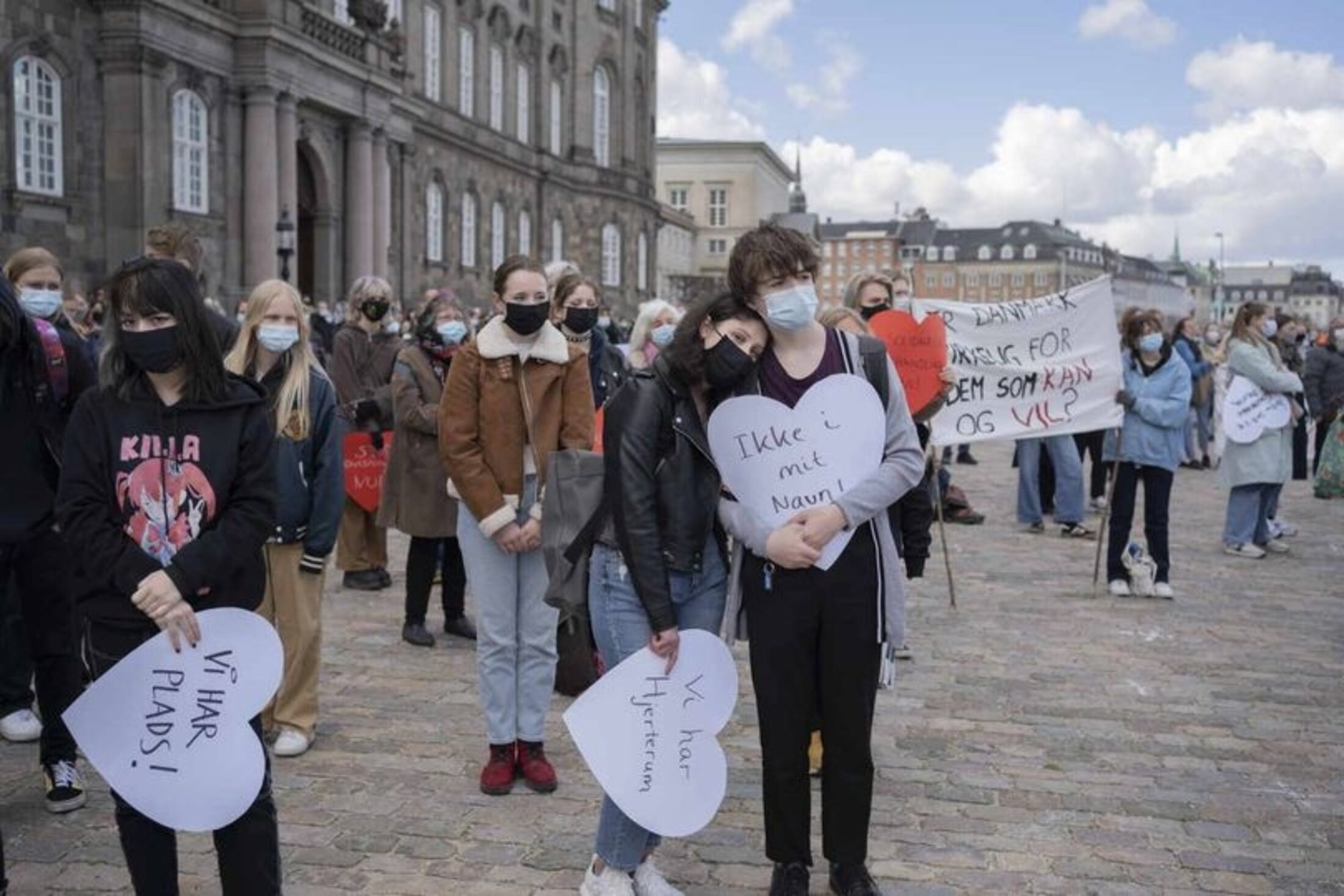 . Photo Charlotte de la Fuente, pour Le Monde : Manifestation devant le Parlement danois contre la décision du gouvernement danois de révoquer les visas des Syriens au Danemark, à Copenhague le 21 avril 2021.