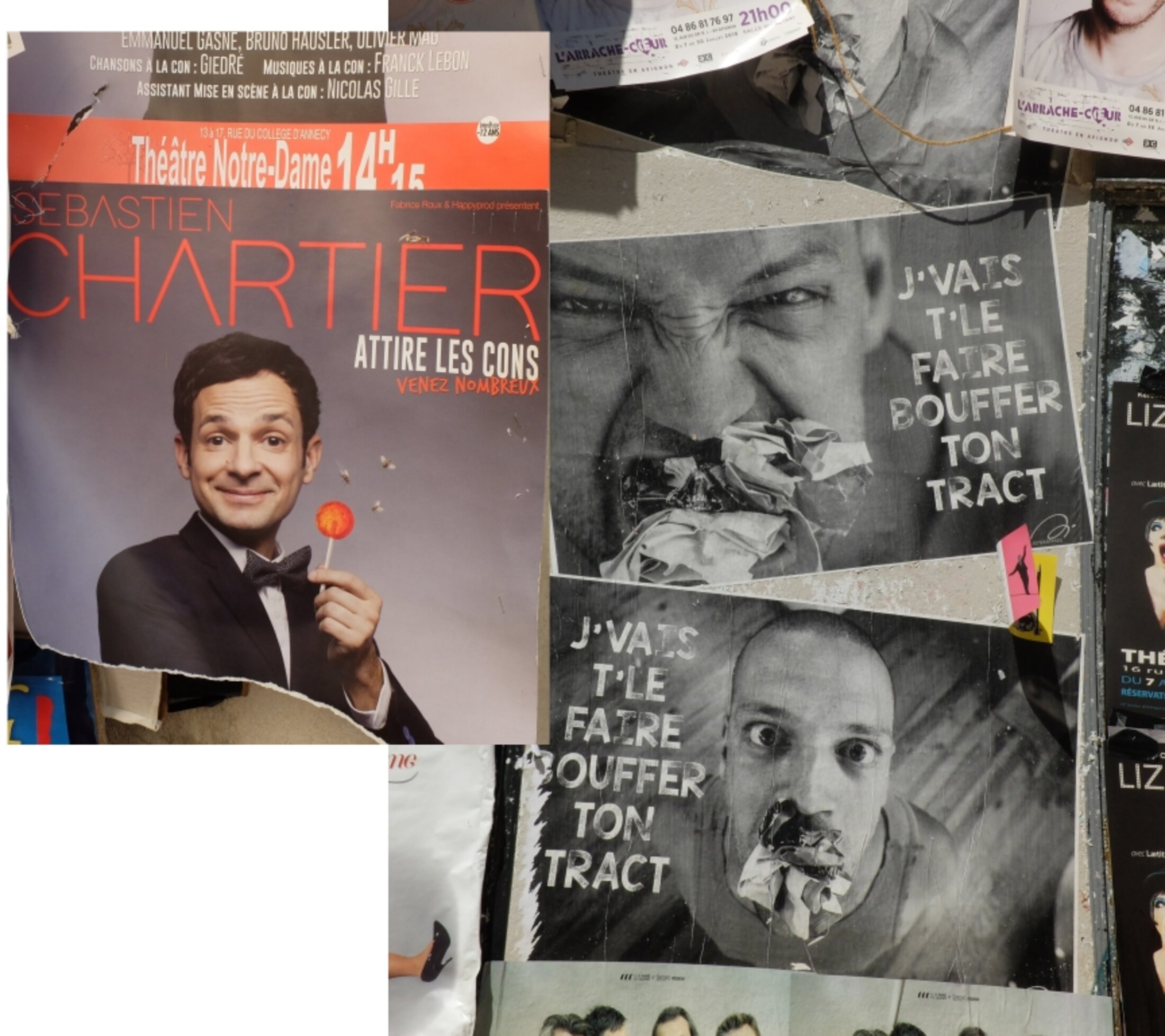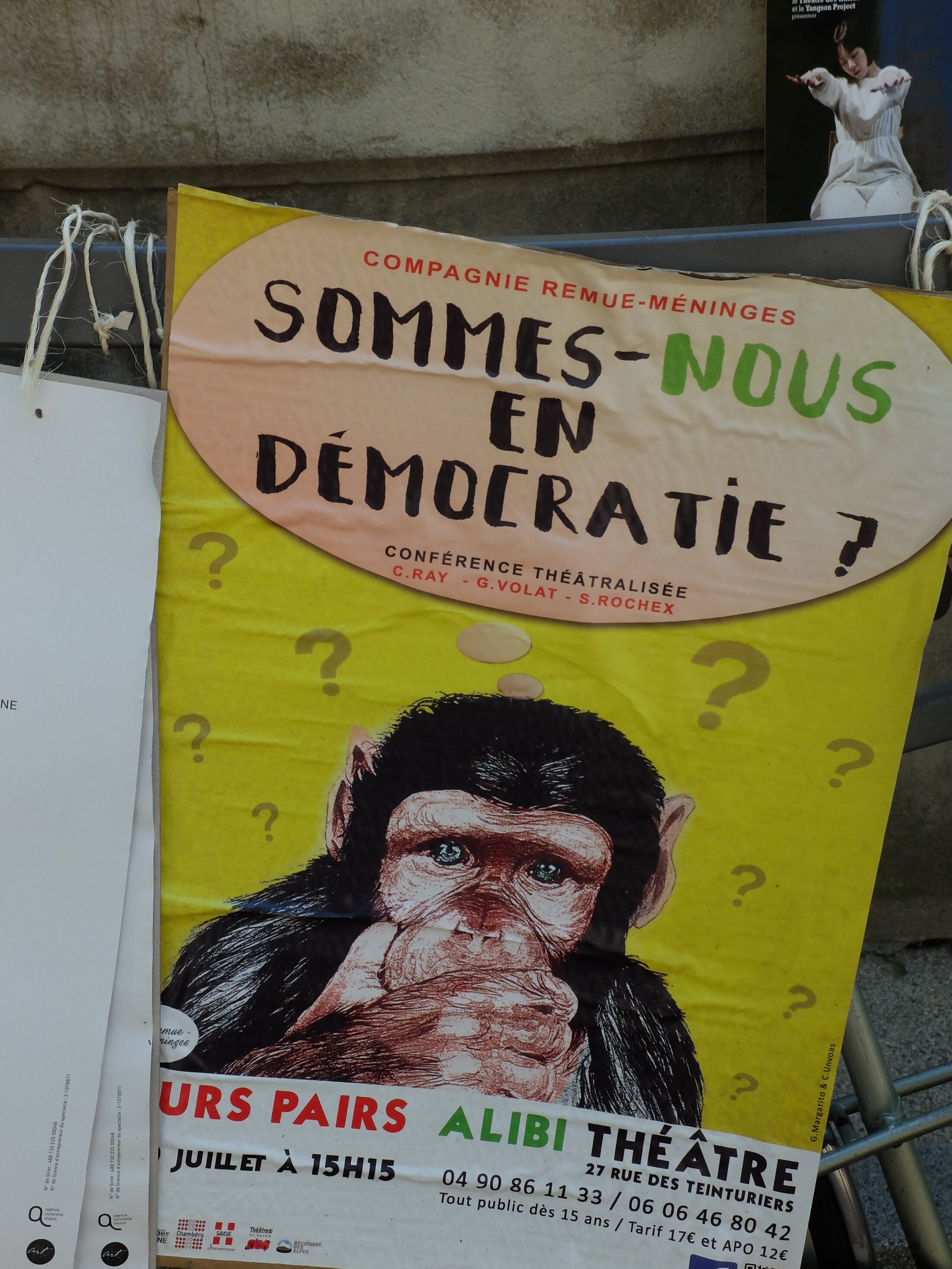 Certains semblent s'interroger sur cette pléthore théâtrale : l'un prétend pouvoir "attirer les cons", tout en incitant les passants à venir nombreux. Un autre menace le distributeur de lui faire bouffer son tract. On a droit à cette question impertinente : "Sommes-nous encore en démocratie ?"