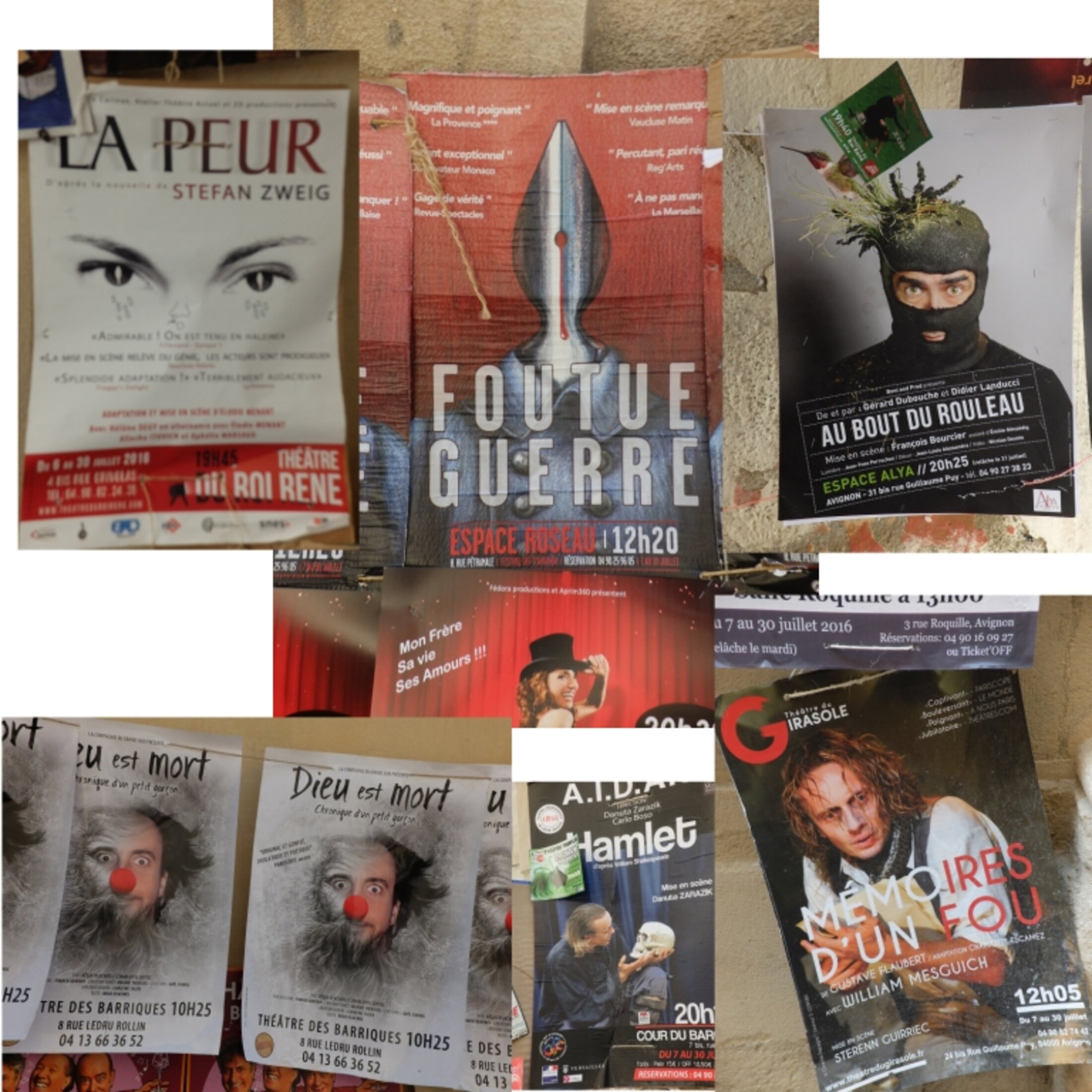 Et bien, si j'en crois les affiches du "off", c'est pas triste non plus : La peur de Stefan Zweig, Le Mal court, Au bout du rouleau, Foutue guerre, Mémoires d'un fou, Dieu est mort…