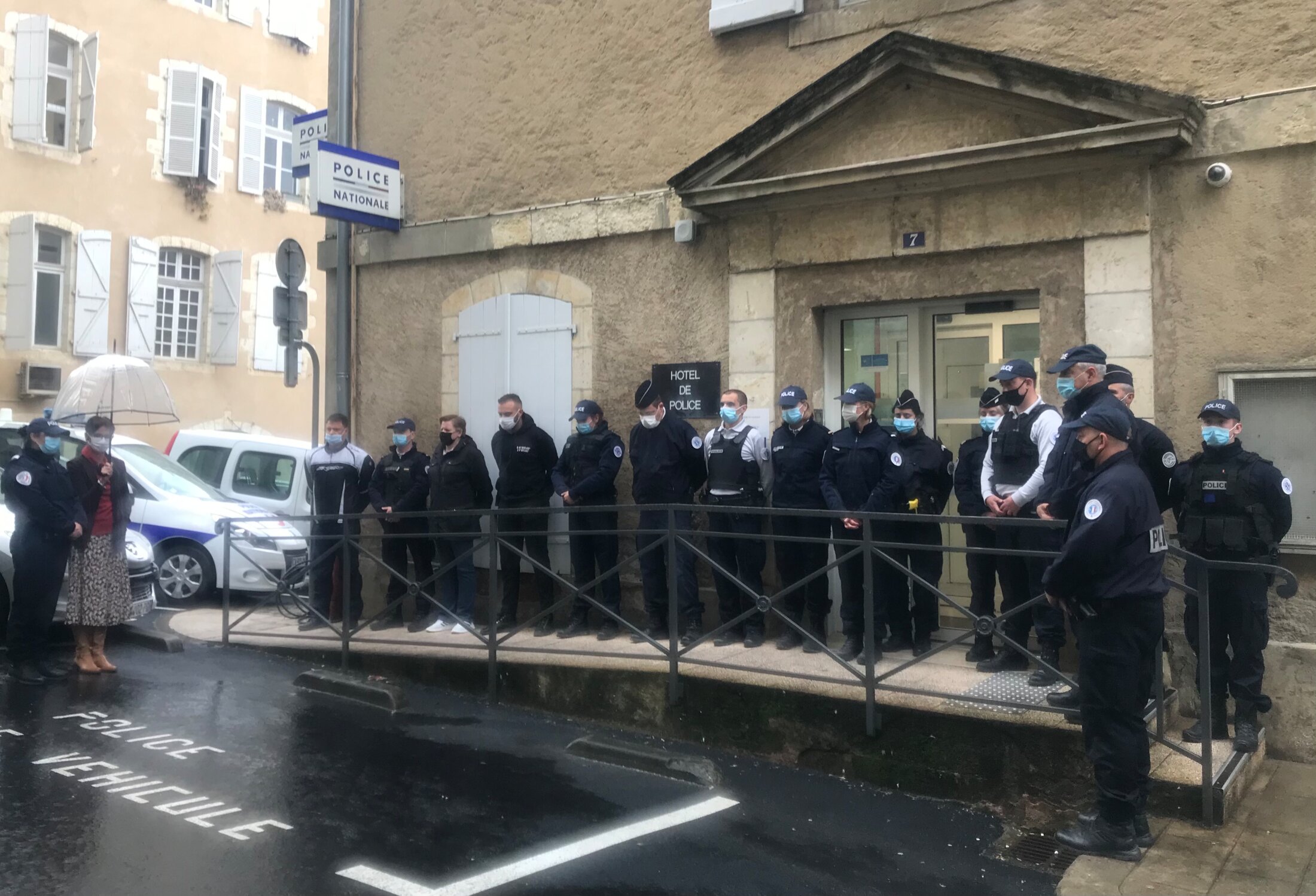 Suite à l’assassinat d’une fonctionnaire de police dans un commissariat de Rambouillet, deux syndicats de policiers (SGP et FO) avaient appelé à une minute de silence, ce jour, à 17h30. Je me suis rendu à cet hommage à Auch, non seulement pour en rendre compte mais parce que c’est une tragédie pour tout citoyen. Une femme a été tuée au couteau pour la simple raison qu’elle travaille dans un commissariat. Comme je l’ai déjà écrit, cet acte ignoble, commis dans une intention terroriste ou par un acte fou, non seulement s’en prend ainsi délibérément à la République mais il complique gravement la vie des étrangers, des réfugiés, des exilés, qui peuvent être davantage encore l’objet de rejet dans une société à cran sur les questions identitaires.