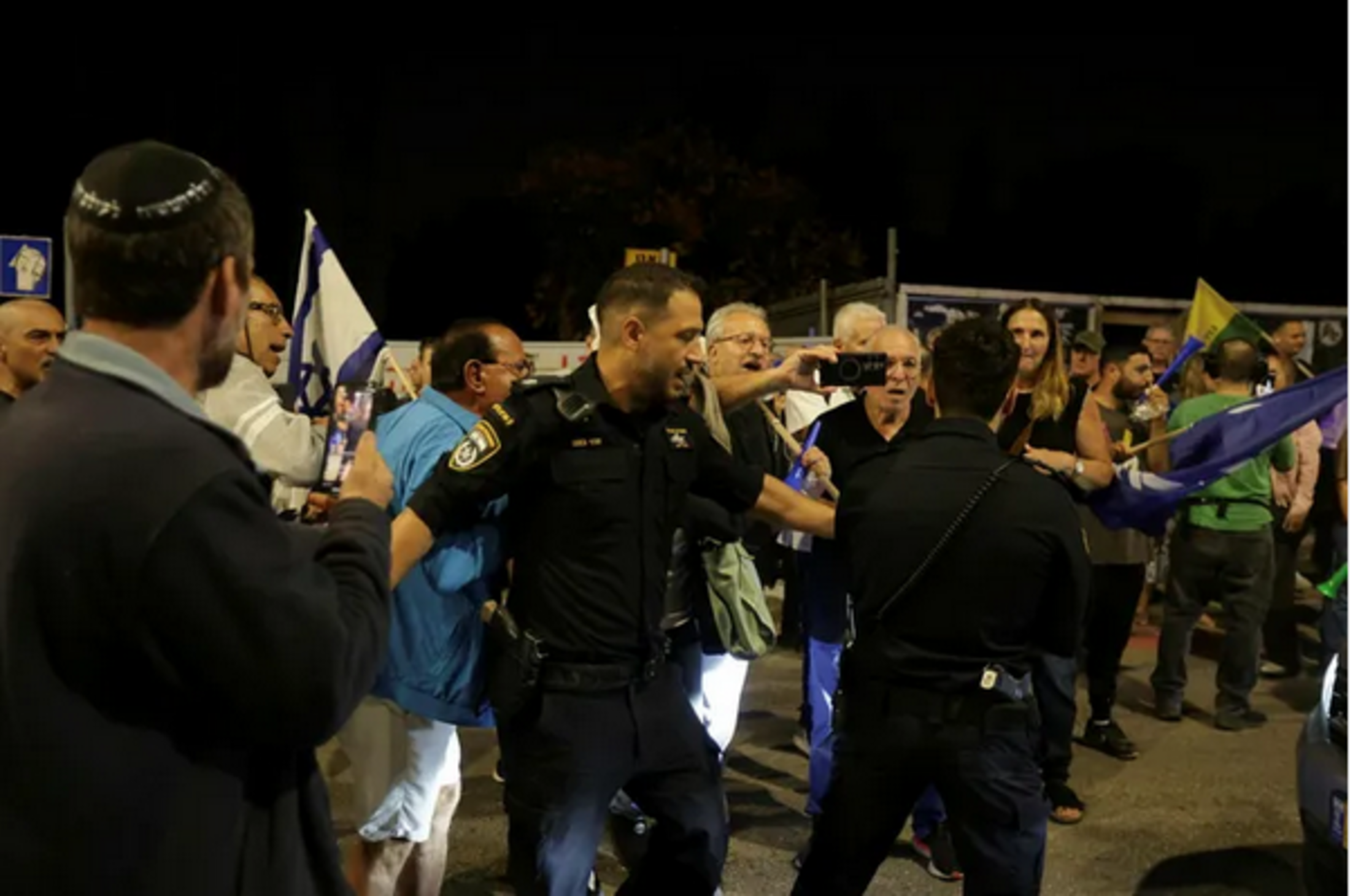 Le rassemblement, qui se tient à Ramat Hasharon, dans le centre d'Israël, réclame son incarcération immédiate. Il se déroule à environ 100 mètres de la résidence de Tomer-Yerushalmi, et certains manifestants ont avancé, s'approchant de sa résidence, ce qui a conduit la police à déclarer le rassemblement illégal. La police a confisqué un mégaphone.