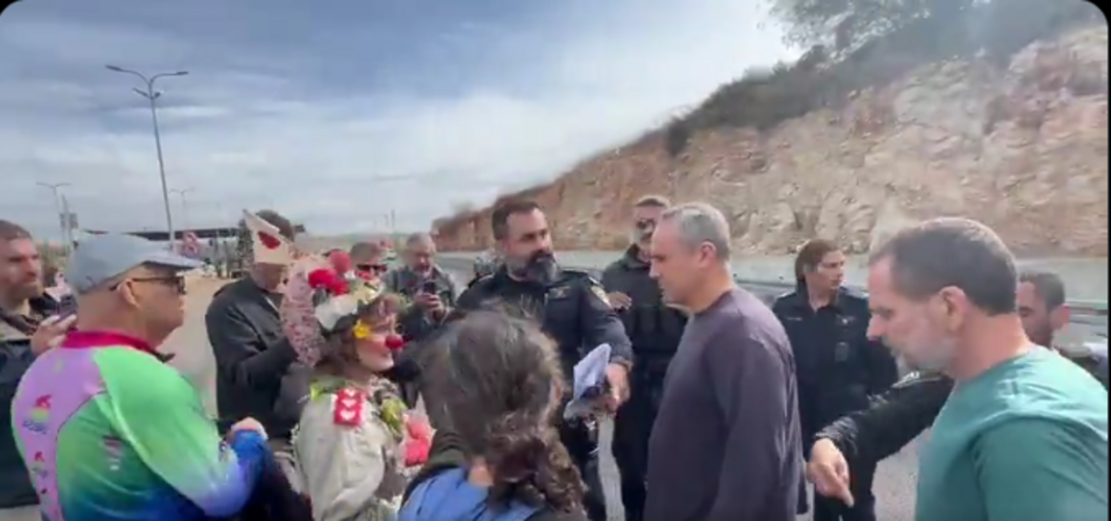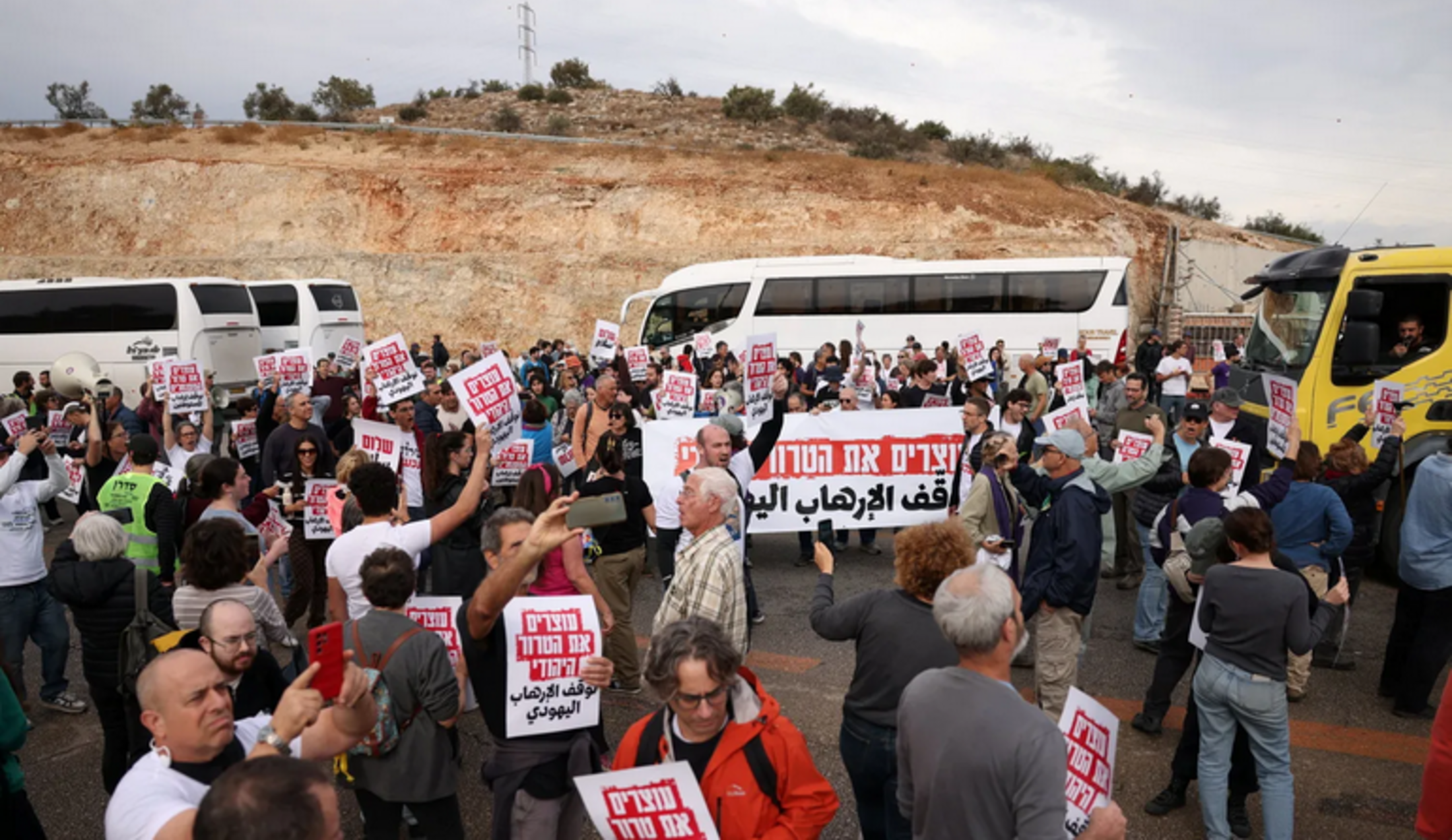Plusieurs militants qui sont descendus des bus ont tenté de bloquer la route et ont été évacués par la police. Les militants se sont ensuite postés sur le bord de l'autoroute, brandissant des pancartes sur lesquelles on pouvait lire « Stop à la terreur juive ».