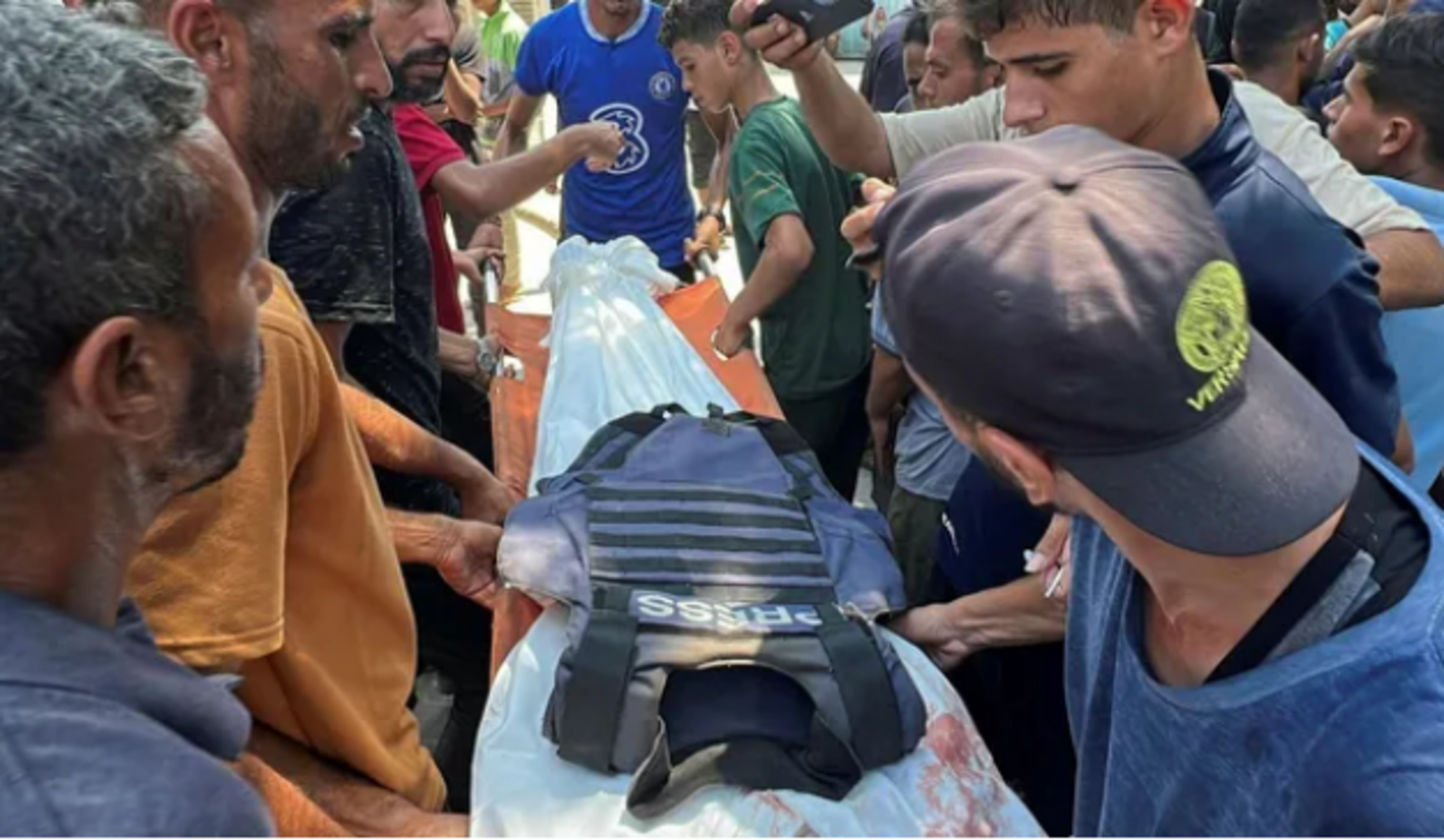 Des personnes en deuil portent le corps du caméraman palestinien