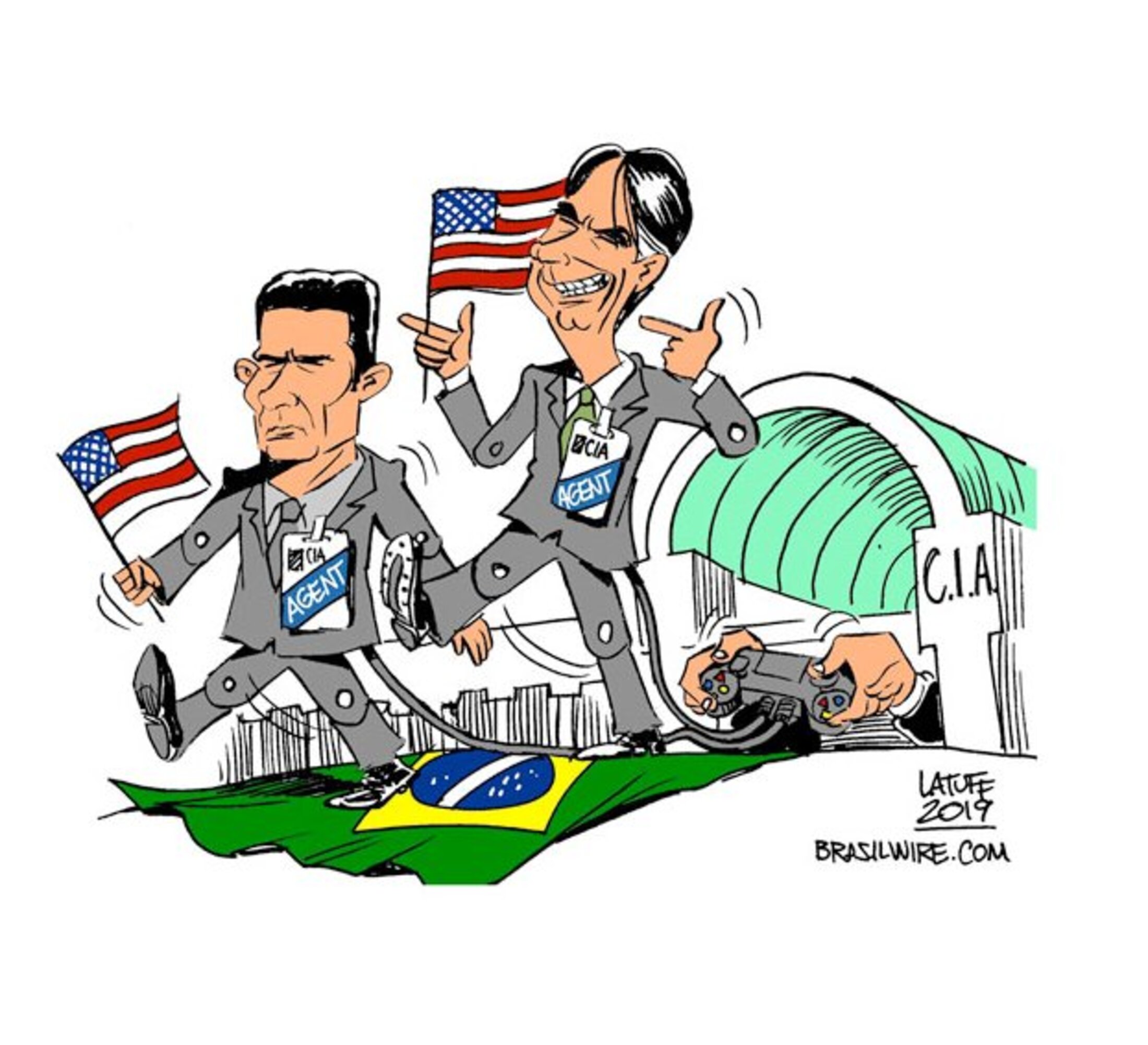 En 2016, immédiatement après le coup d’État qui a écarté Dilma Rousseff, Bolsonaro et l’un des hommes les plus puissants du Brésil, le Général Sérgio Westphalen Etchegoyen, alors nouveau chef de la sécurité institutionnelle du Brésil, ont rencontré le chef de la CIA à Brasilía. La réunion secrète a été révélée accidentellement lorsque l’ordre du jour d’Etchegoyen a été publié. La visite de la CIA par Bolsonaro n’a pas seulement mis en colère les anti-impérialistes, le pays devrait maintenant chercher des réponses après des années de naïveté et de complaisance sur le rôle des Etats-Unis dans la descente du pays dans la détresse politique – elle a même exaspéré les commentateurs conservateurs. Le nouveau gouvernement accédait déjà à une liste de souhaits, commerciaux et stratégiques, y compris la location de la base de fusées Alcantâra voulue de longue date par l’Armée des États-Unis, la première présence de ce genre sur le sol brésilien depuis la Seconde Guerre mondiale. Les USA ont énormément tiré d'avantages depuis le coup d’État de 2016, qui n’ont fait qu’augmenter et se concrétiser avec l’élection de Bolsonaro. Le président brésilien a été accompagné au siège de la CIA par Sérgio Moro, le juge-inquisiteur formé aux Etats-Unis, devenu ministre de la Justice, responsable de l’emprisonnement politique du principal concurrent de Bolsonaro dans l’élection de 2018, Lula da Silva, favori jusqu’à son retrait forcé. Moro a offert l’élection à Bolsonaro, et a été immédiatement récompensé par un poste ministériel. Le couple a rencontré Gina Haspel, la responsable de l’agence, renvoyée en 2013 après des révélations de son rôle direct dans la torture de suspects du 11 septembre. Étant donné que Bolsonaro est un partisan enthousiaste de la torture et avait fait publiquement l’éloge des tortionnaires de la dictature brésilienne, cela ne peut pas lui avoir causé de problème.