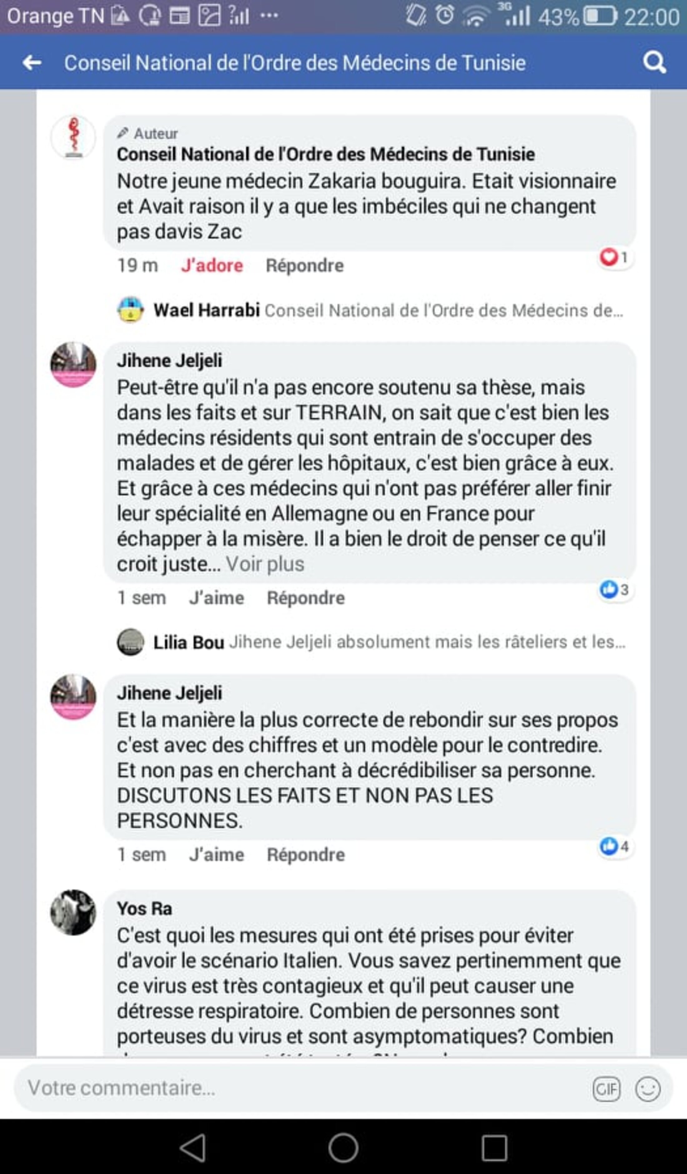 Ce passage a été un électrochoc pour tout le monde. Il a mis en doute la version officielle mais a surtout permis à un grand nombre de tunisiens de prendre la mesure et de commencer réellement à se protéger. Des le lendemain beaucoup plus de gens ont commencé à mettre des bavettes. Devant l’épicier du quartier pour la première fois je voyais une longue file de personnes espacées par un mètre ou deux. Certains ont même pris de l’avance sur le gouvernement et se sont déclarés en auto-confinement. J’avais reçu des centaines de messages de remerciements et je ne peux vous traduire le sentiment que j’ai ressenti en les lisant.