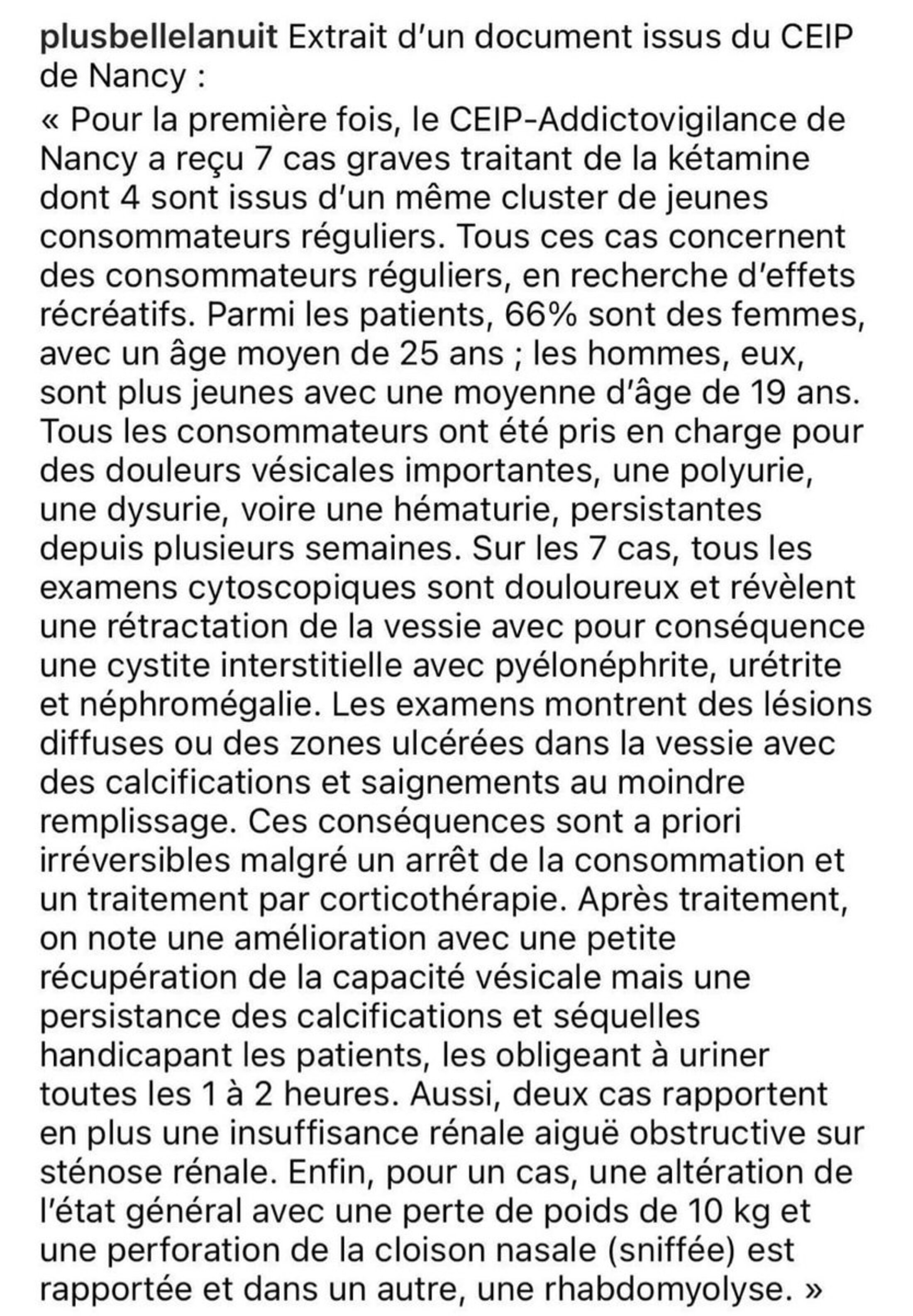 C’est vraiment à lire, notamment pour tous les membres du corps médical qui me suivent. Il faut protéger l’usage médical de la kétamine.